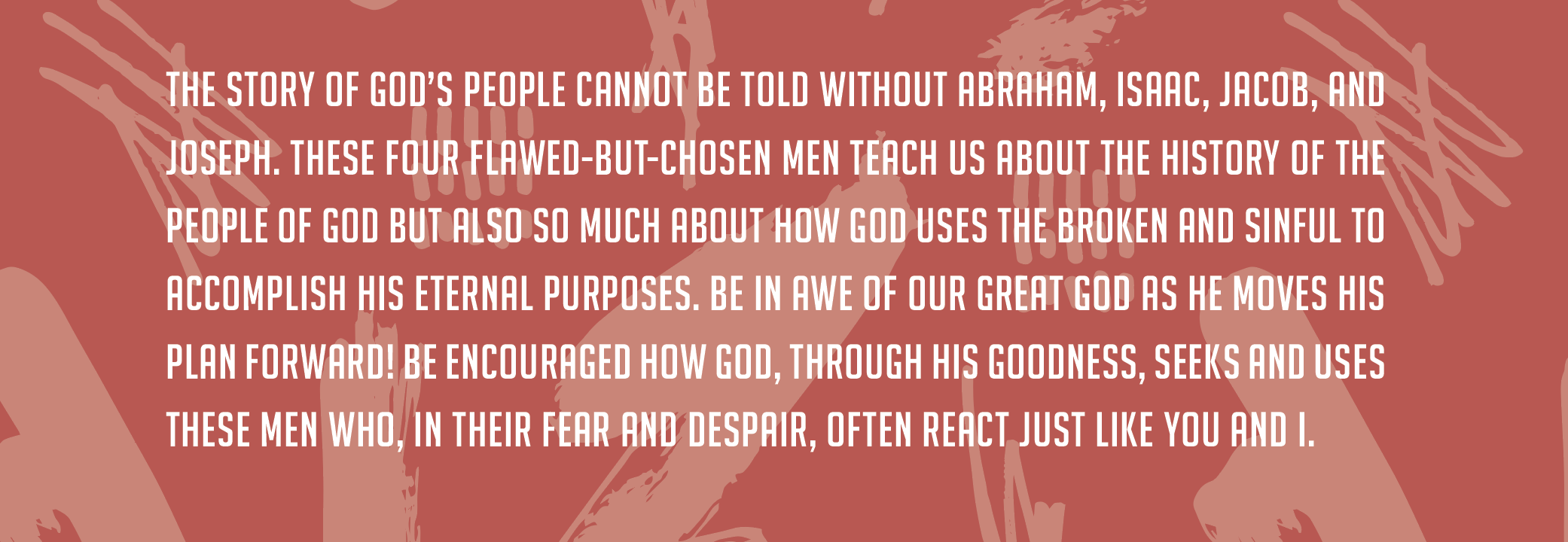 We would love to have all women join us for one of our two Women’s Bible Studies. We will begin on September 9th both for Tuesday Morning Women’s Bible Study (9:30-11:30AM) at Redeemer with nursery provided and Tuesday Night Women’s Bible Study begins in a church member’s home. We will be studying The Patriarchs (Genesis 12-50) this year. We ask for all women to sign up as soon as possible.